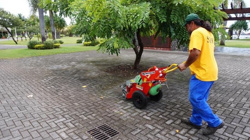 "Le désherbage thermique effectué au sein du parc Paofai "Tahua Autonomie" présente des intérêts multiples. Cette évolution fait suite tout d'abord à la volonté du Service des Parcs et Jardins et de la Propreté d'offrir au public un parc 'sans matière nocives ni produits chimiques' et qui a donc conduit notamment à l'achat d'un désherbeur thermique. Ce matériel permet de remplacer l’utilisation de désherbants chimiques nocifs pour la santé et pour un environnement si proche de la mer. Il permet également de mécaniser des tâches effectuées à l'origine à la main et permettant un gain de temps incomparable (1m² traité en 10 secondes contre 5 minutes à la main, sans compter la fatigue physique du travail effectué au sol)." (M. RAYNAL, Chef de Service Parcs et Jardins et de la Propreté)